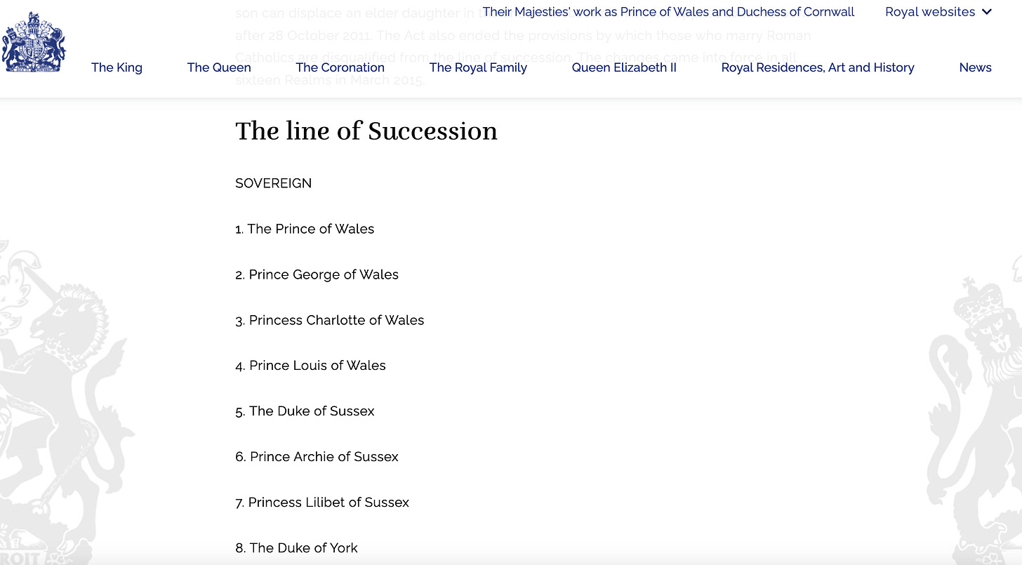 Lady C also concedes there is no easy process for Buckingham Palace to investigate, although they did take many months to formally add Archie and Lilibet to the line of succession on the royal website.