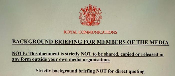 I have obtained a bombshell Buckingham Palace memo sent to the complicit royal rota that confirms how William took control, while trying to spin the announcement for the King.